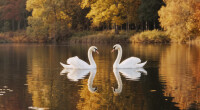 two swans serene lake autumn