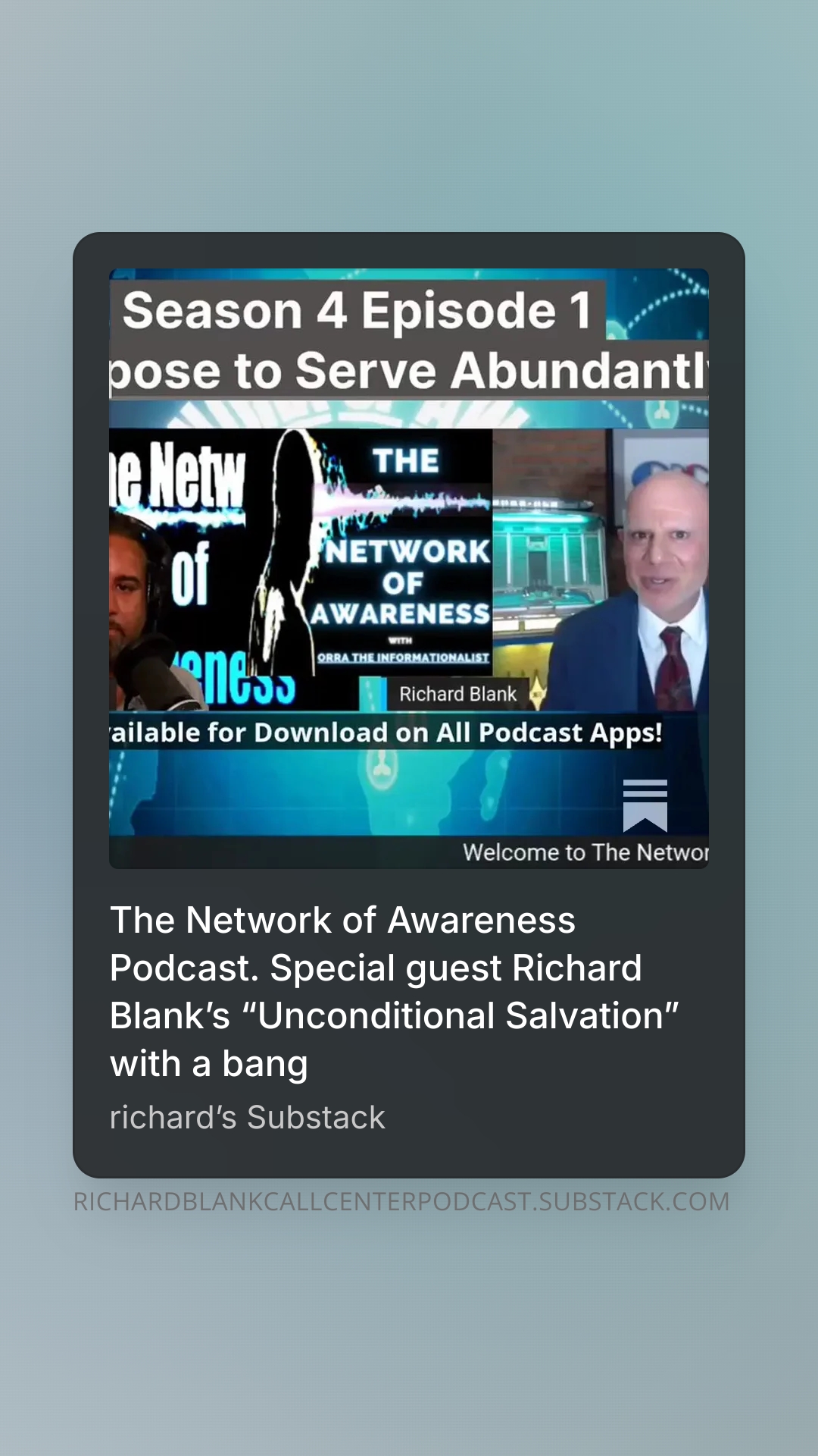 The Network of Awareness Podcast. Special guest Richard Blanks Unconditional Salvation with a bang