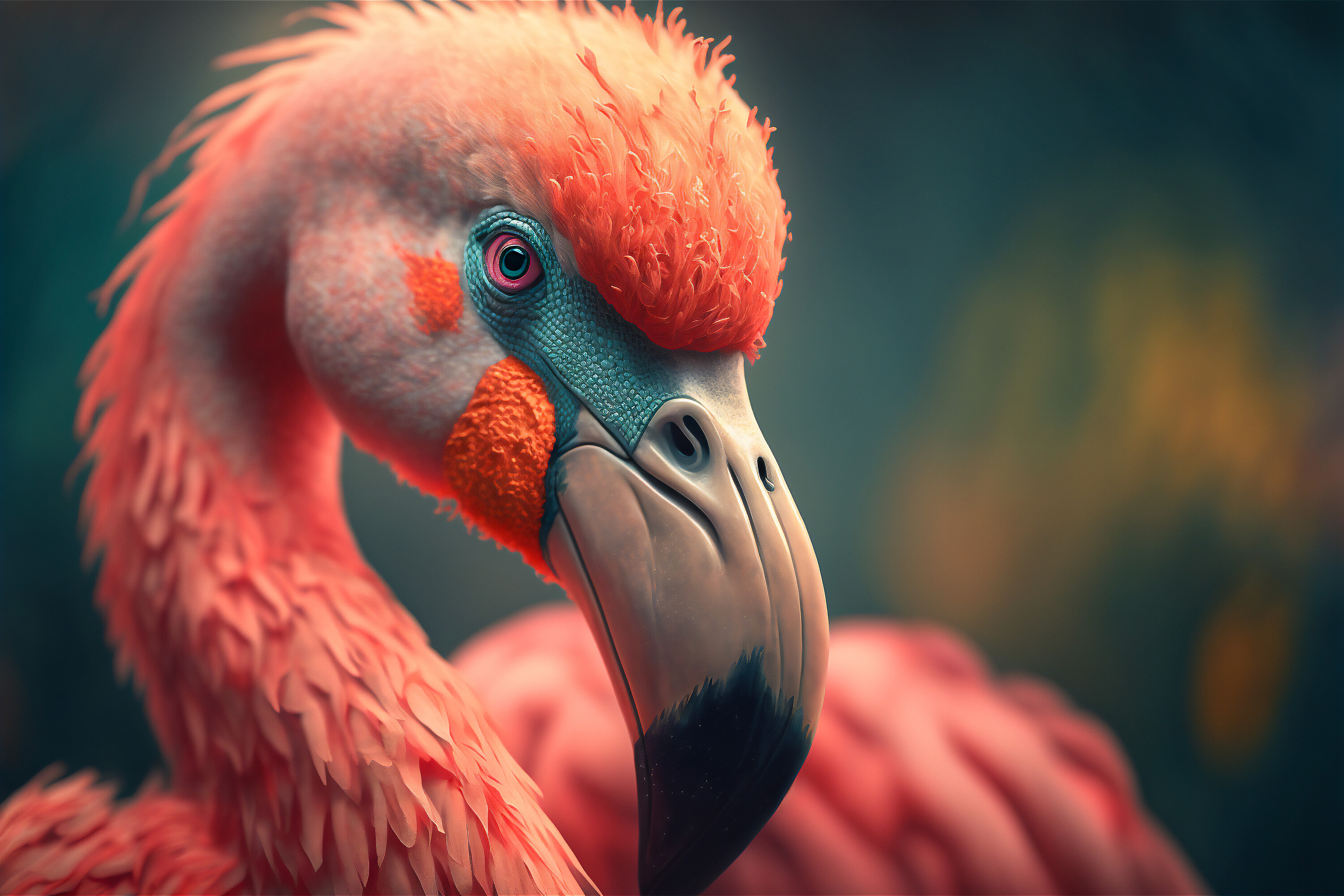 One pink flamingo bird closeup