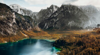 lake in the middle of mountains under white clouds and blue sky during daytime
