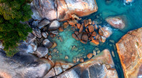 Aerial view of seashore near Lamai Beach, Koh Samui, Thailand.