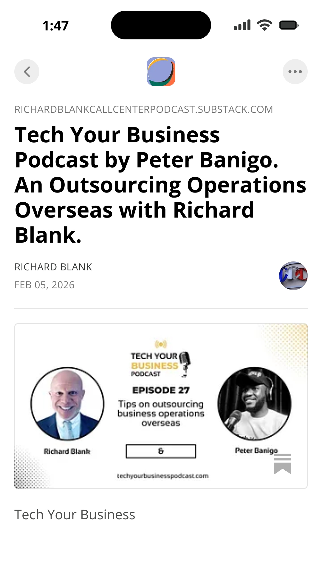 Tech Your Business Podcast by Peter Banigo. An Outsourcing Operations Overseas with Richard Blank. (