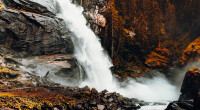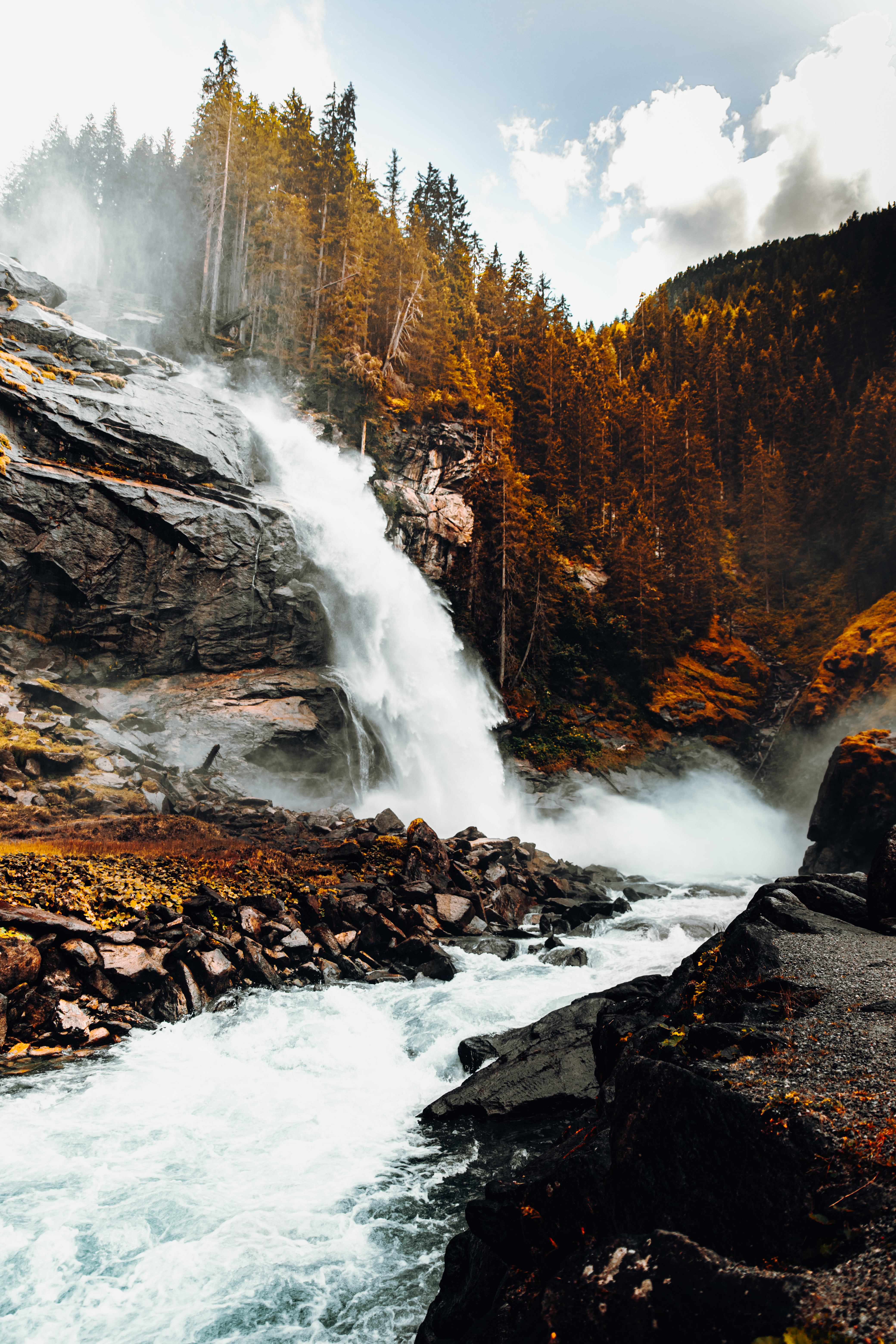 water falls on brown rocky mountain during daytime
