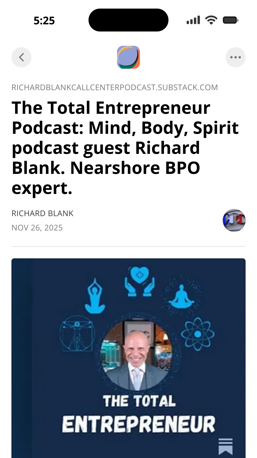 The Total Entrepreneur Podcast Mind, Body, Spirit podcast guest Richard Blank. Nearshore BPO expert.