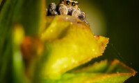 Brown and Black Spider on Green Leaf