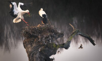 Mesmerizing shot of two storks building their nest
