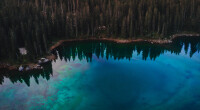 vertical shot lake carezza surrounded by dolomites greenery south tyrol italy