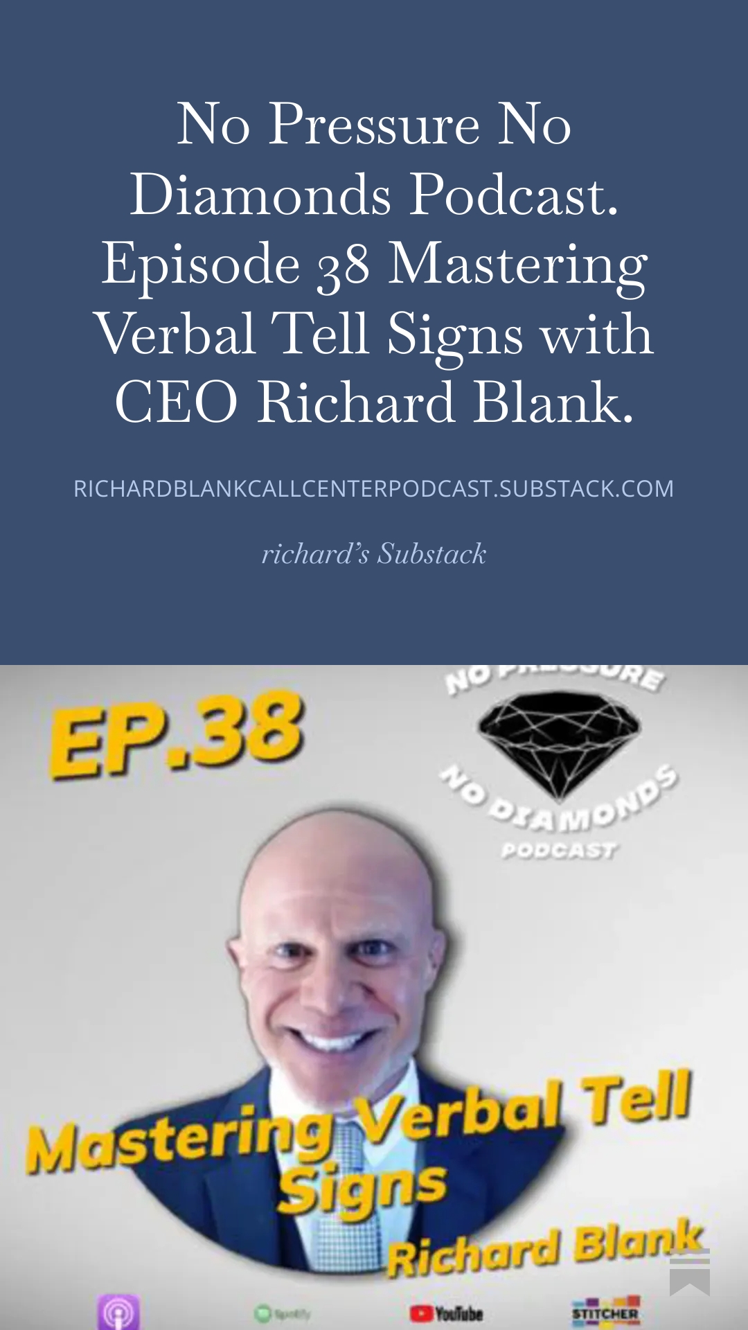 No Pressure No Diamonds Podcast. Episode 38 Mastering Verbal Tell Signs with CEO Richard Blank.