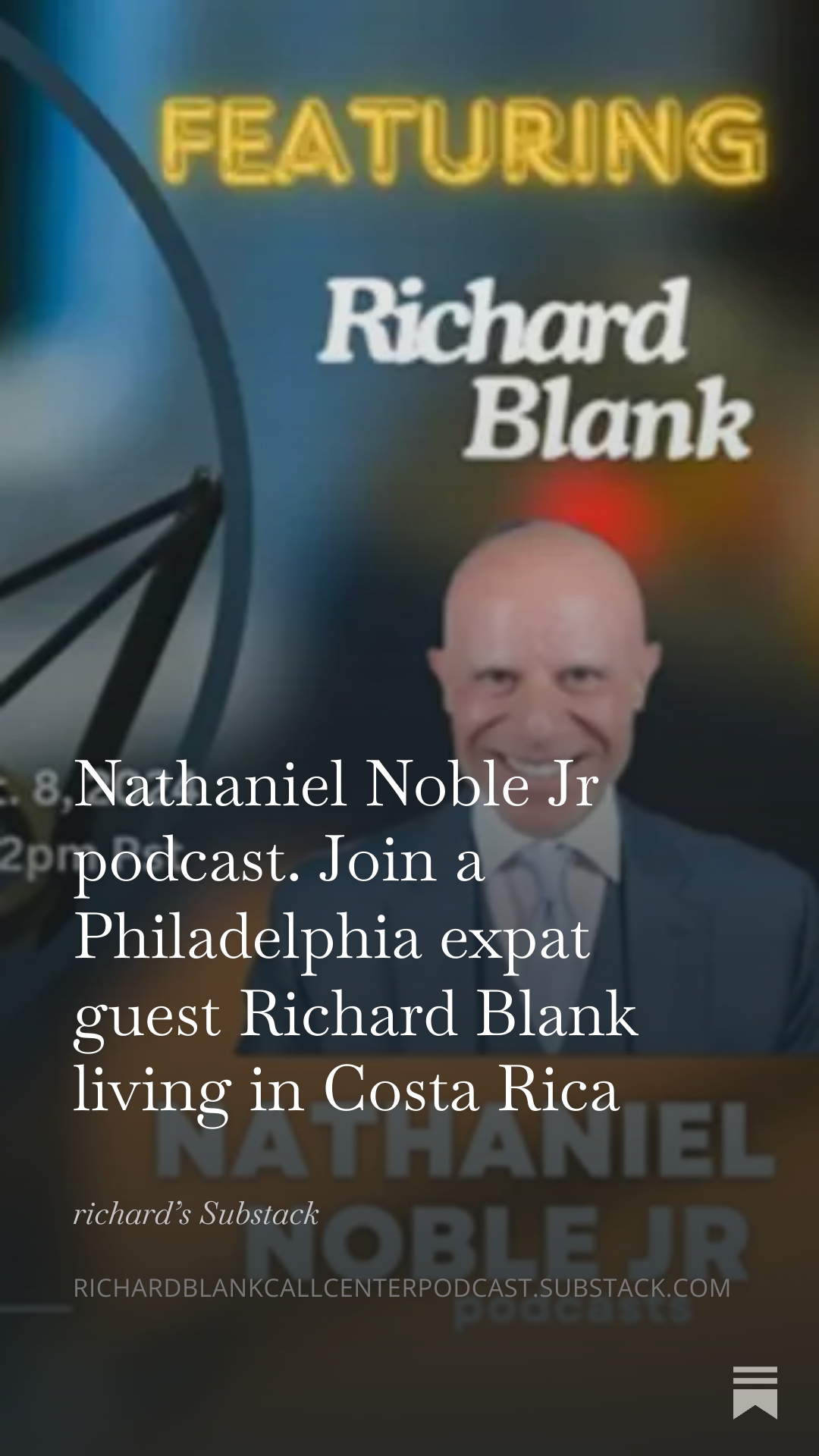 Nathaniel Noble Jr podcast. Join a Philadelphia expat guest Richard Blank living in Costa Rica
